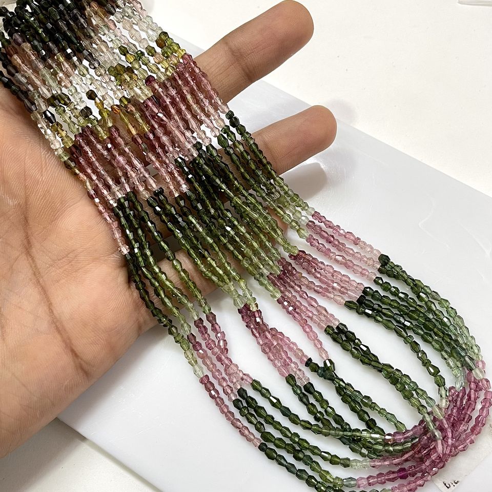 Multi-Tourmaline Faceted Drum Shape Stone Beads Natural Tourmaline Wholesale Beads for Jewelry Making