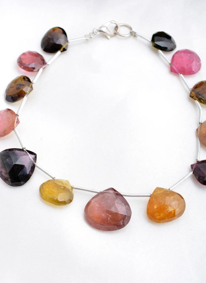 ลูกปัดพลอยทัวร์มาลีนทรงลูกแพร์เจียระไนหลายเหลี่ยม พลอยธรรมชาติ สำหรับทำเครื่องประดับชั้นดี