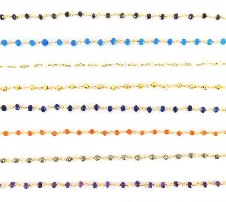สายสร้อยลูกประคำหุ้มลวดทัวร์มาลีนชุบทองหลายเส้น