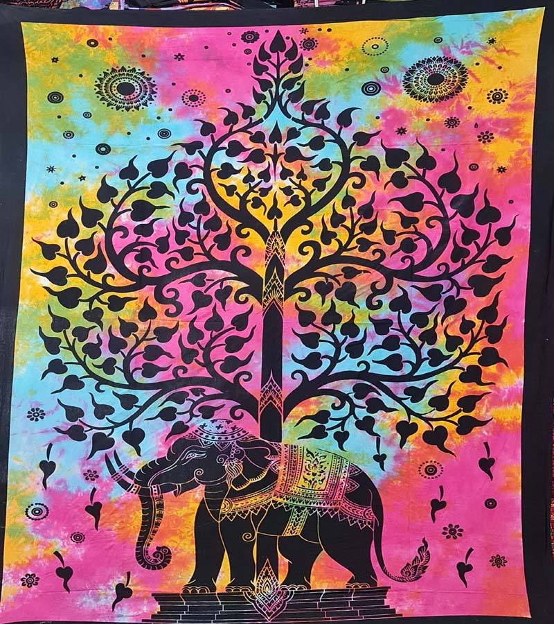 หลายต้นไม้ช้างพิมพ์ผนังแขวนพรมผ้าฝ้ายผ้าปูที่นอนขนาดเดียวสำหรับตกแต่งบ้าน GC-TP-195-A