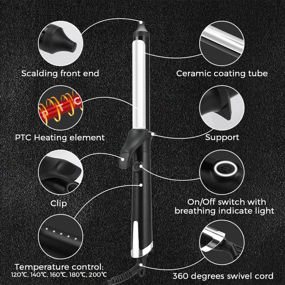 เครื่องม้วนผมแบบหลายท่อ ขนาด 9 มม. 25 มม. 32 มม. ระบบทำความร้อน PTC เคลือบเซรามิก ปรับอุณหภูมิได้ 5 ระดับ สำหรับผมลอน