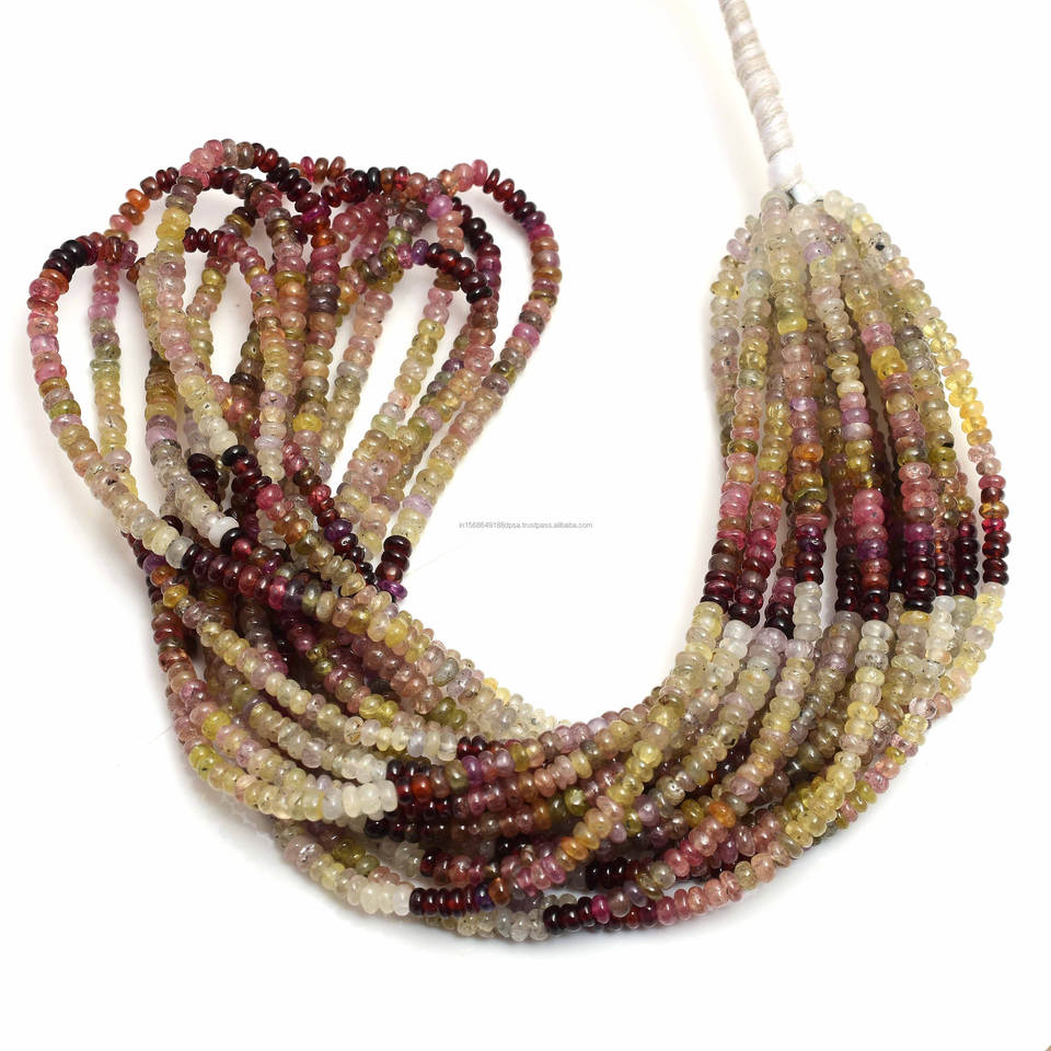 ลูกปัดแซฟไฟร์หลากสีทรงกลมขนาด5-6มม. 16นิ้วลูกปัดพลอยได้รับการรับรองจากบุคคลที่สามใช้ทำเครื่องประดับ