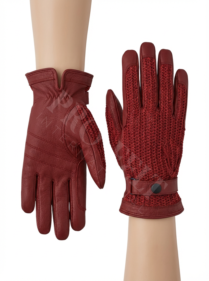 ถุงมือหนังถักอเนกประสงค์พร้อมกระดุมปิดข้อมือสำหรับงานกลางแจ้ง ขี่ม้า ป้องกันมือในชีวิตประจำวัน ถุงมือสกีแบบสั่งทำ