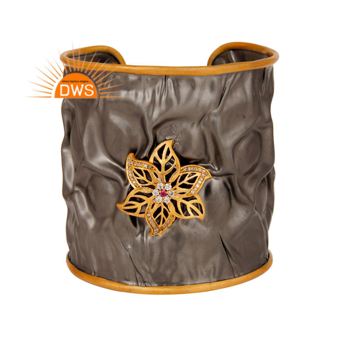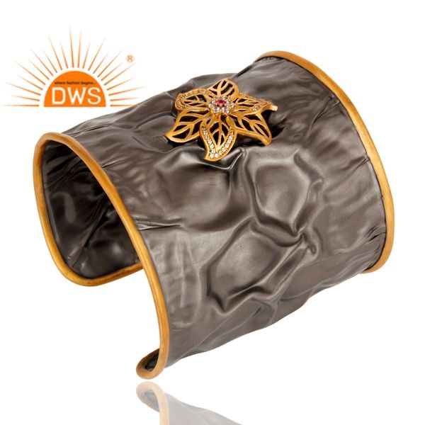 ชุดเพทายหลายชิ้นดีไซน์แบบโบราณดูสง่าราศีชุบทองเหลืองสองโทนกำไลข้อมือกว้างเครื่องประดับ