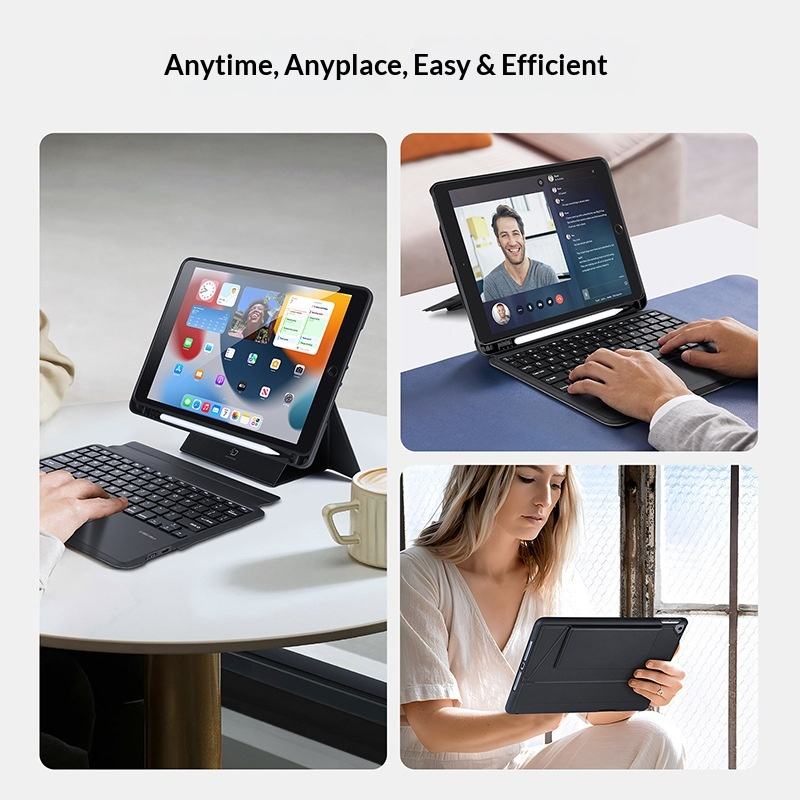 เคสป้องกันแท็บเล็ตแบบพับได้หลายมุม แยกส่วนได้ พร้อมคีย์บอร์ดแม่เหล็กไร้สาย 3 in 1 สำหรับ iPad 10.2 Pro 11