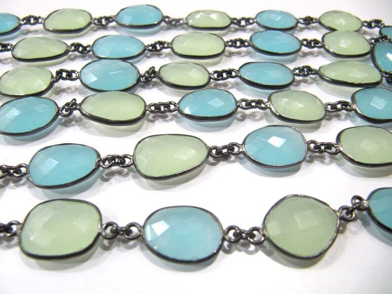 โซ่เชื่อมต่อขอบ10ถึง15มม. สีเขียวและหินควอตซ์รูปร่างฟรี briolette หลายสีขายต่อหนึ่งฟุต