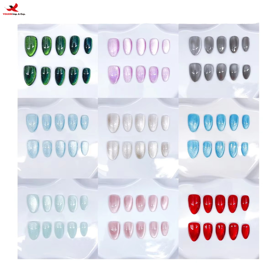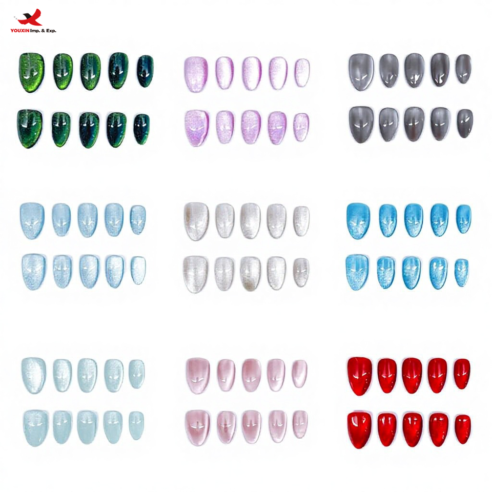 เล็บปลอมอะคริลิคทรงอัลมอนด์สั้นลายตาแมวหลากสี ดีไซน์สี่เหลี่ยม ทำมือ 10 ชิ้น ใช้ซ้ำได้ พร้อมกาว GZ RTS แบบขายส่ง คละแบบ