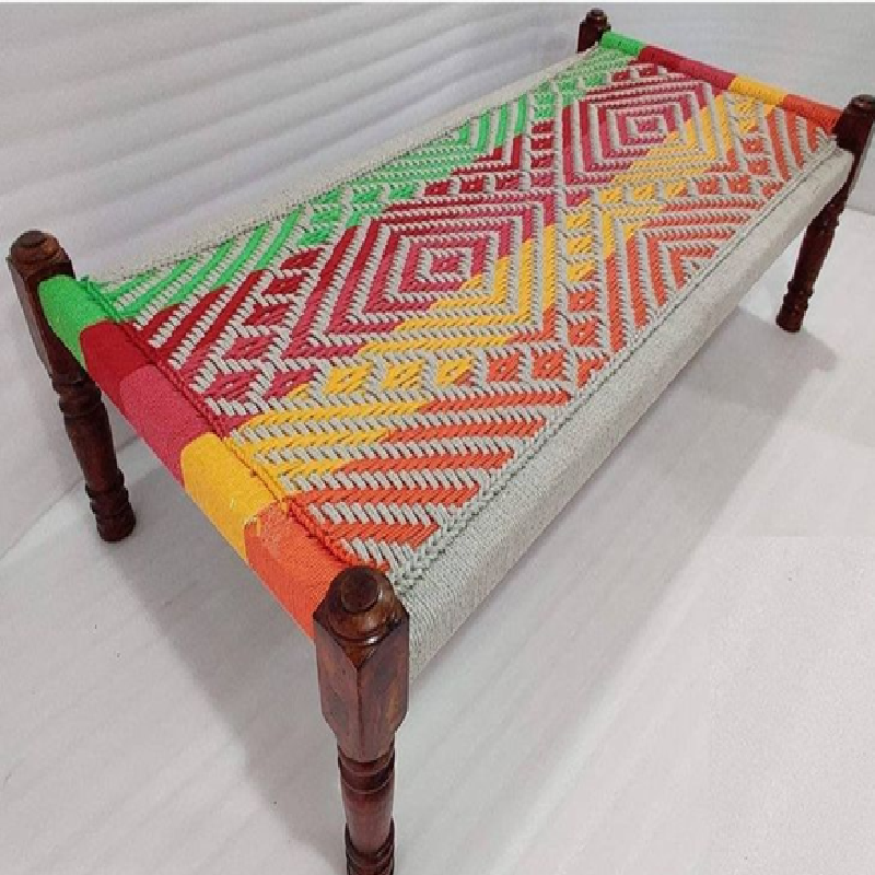 เก้าอี้ชาร์ปายแบบดั้งเดิมหลากสี โดดเด่นด้วยการผสมผสานเชือกสีทั้งแบบเรียบและแบบมีลวดลายบนโครงสีเข้ม ราคาขายส่ง