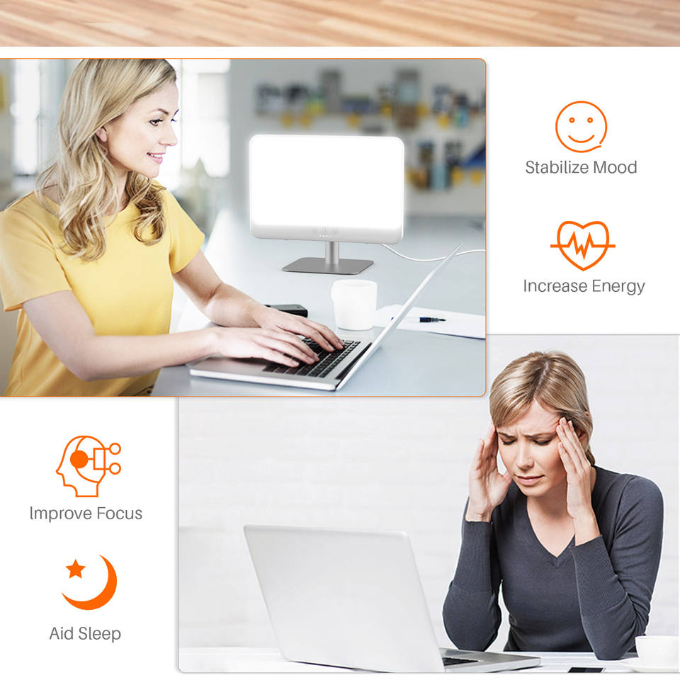 โคมไฟแสงแดดปรับพลังงานได้ใช้งานได้หลากหลายฟังก์ชั่นหลอดไฟ LED สีขาวบำบัดแสงเศร้าไฟอารมณ์ความสนใจโคมไฟกลางวันโคมไฟบำบัด