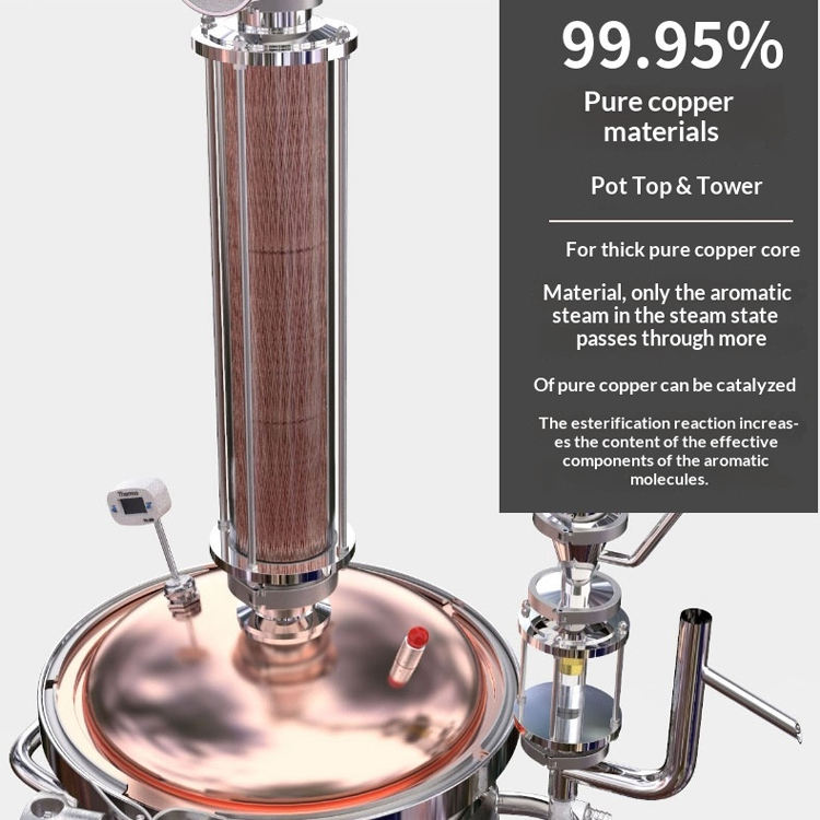 เครื่องกลั่นน้ำมันหอมระเหยอเนกประสงค์แบบหม้อทองแดงสำหรับสกัดแอลกอฮอล์และสมุนไพร