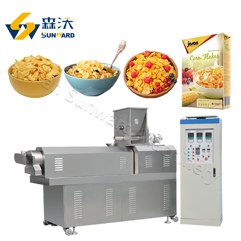 เครื่องอัดรีดเกล็ดข้าวโพดอัตโนมัติเครื่องทำอาหารเช้าแบบมัลติฟังก์ชันอุปกรณ์สายการผลิต