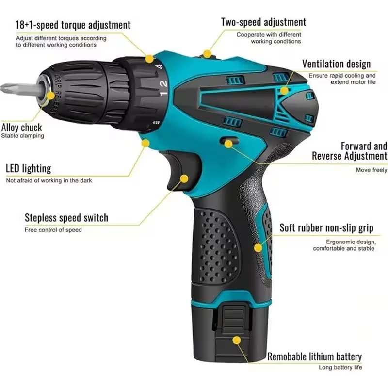 กล่องเครื่องมืออเนกประสงค์สำหรับงานปรับปรุงบ้าน สว่านไร้สาย แบตเตอรี่แบบชาร์จได้ ความจุ 20 มม. กำลังไฟ 500 วัตต์ สำหรับงานตกแต่งบ้านด้วยไฟฟ้า