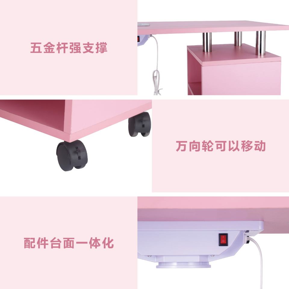 โต๊ะทำเล็บอเนกประสงค์ทันสมัยสีชมพู สำหรับร้านเสริมสวย โต๊ะเครื่องแป้ง โต๊ะทำเล็บมือ