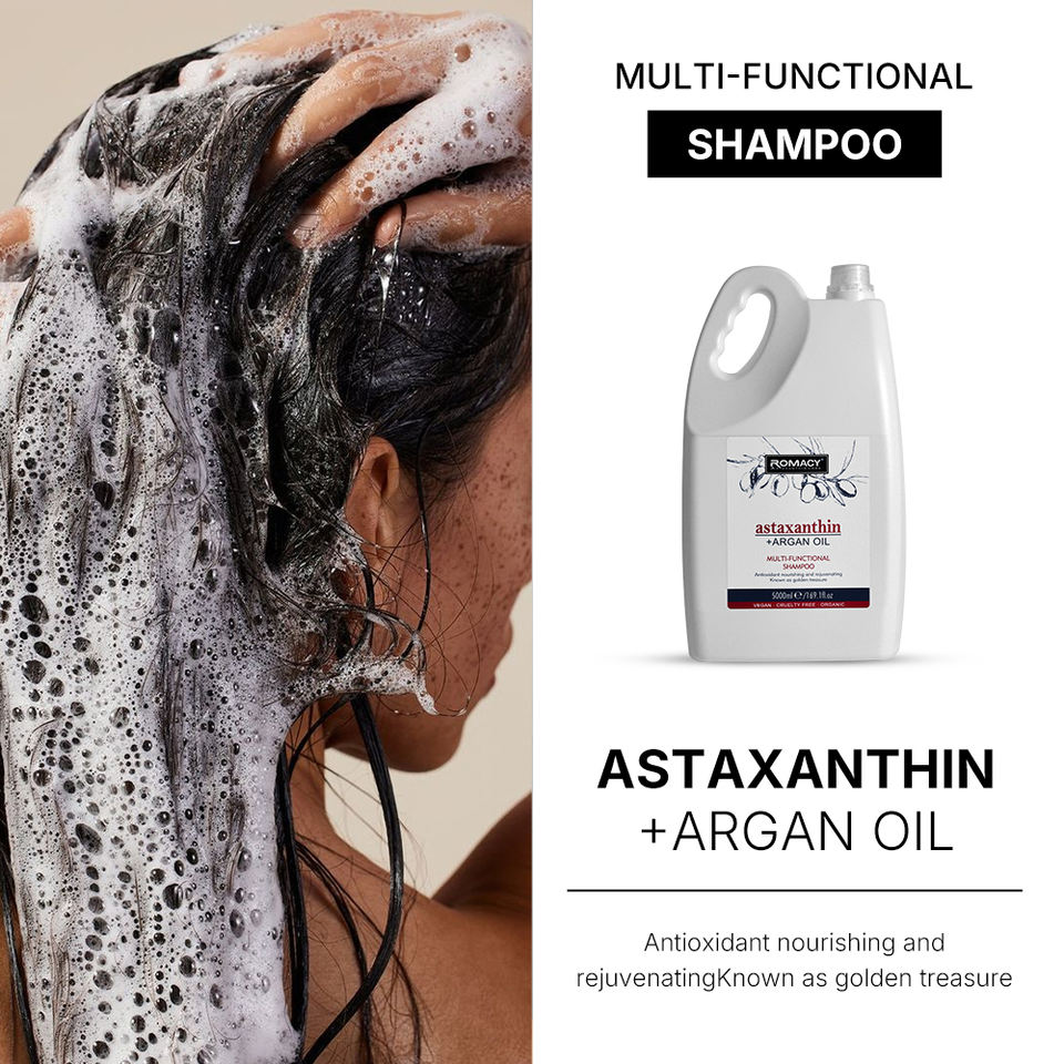 แชมพูครีมเคราตินสมุนไพรออร์แกนิคอเนกประสงค์ผสมแอสตาแซนธินและน้ำมันอาร์แกน 2-in-1 บำรุงและฟื้นฟูสีผมให้เรียบลื่น