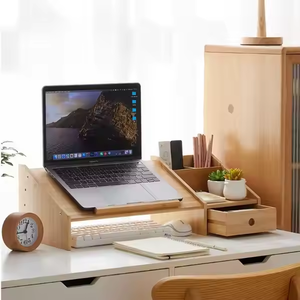 ขาตั้งแล็ปท็อปไม้ไผ่ระบายความร้อนพร้อมลิ้นชัก