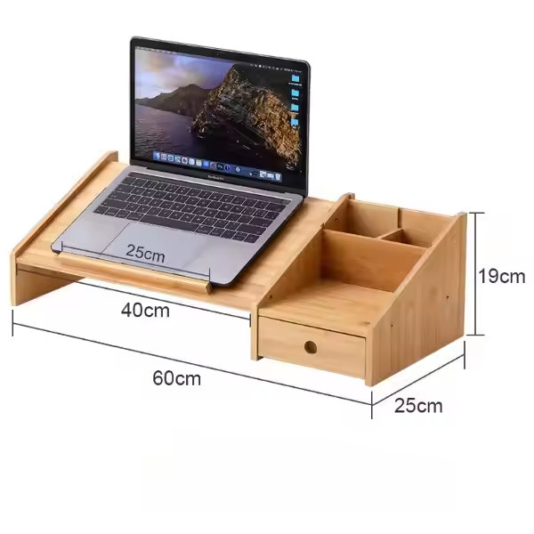 ชั้นวางแล็ปท็อปไม้ไผ่อเนกประสงค์สำหรับจัดเก็บคอมพิวเตอร์พร้อมลิ้นชักเพื่อความสะดวกในการใช้งานในสำนักงาน