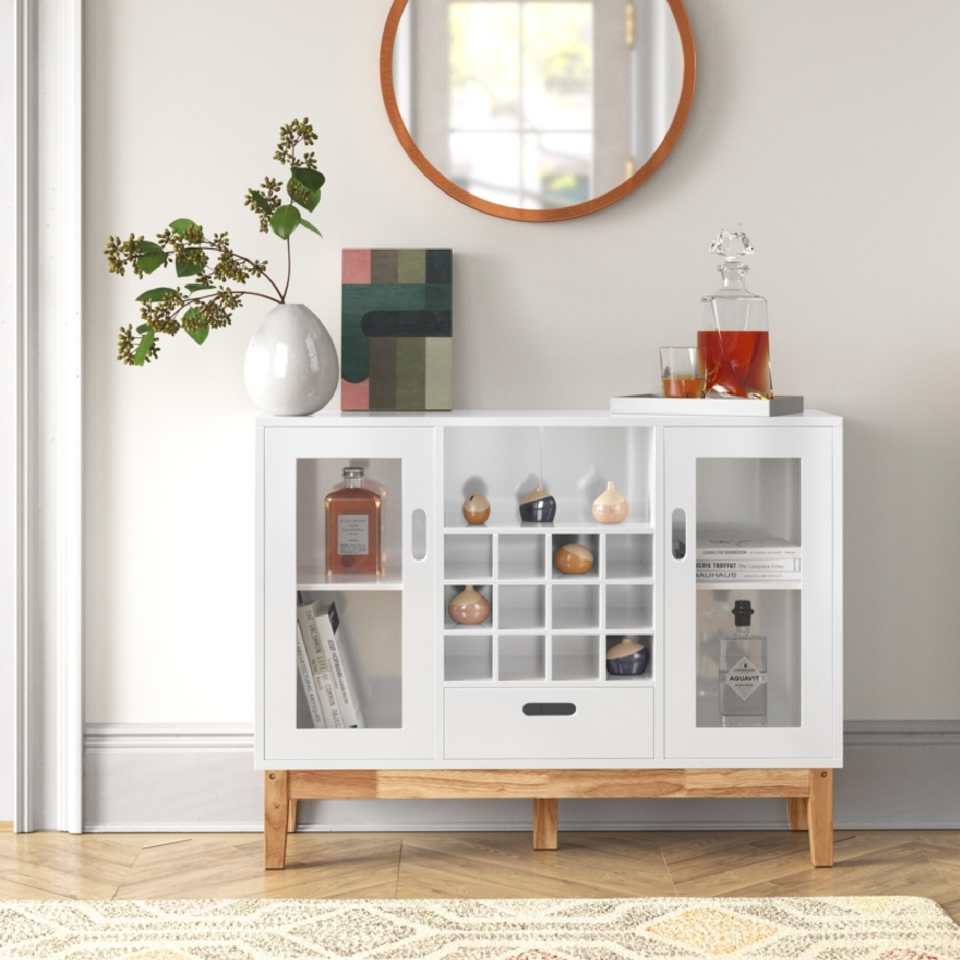 ตู้บาร์อเนกประสงค์ตู้ไม้ติดล้อเฟอร์นิเจอร์ในบ้านประหยัดพร้อมชั้นเก็บของสำหรับห้องนั่งเล่น