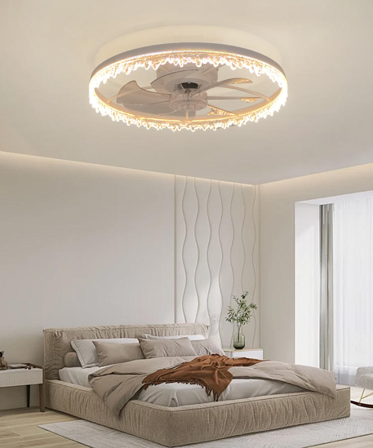 พัดลมเพดานอัจฉริยะทันสมัยพร้อมไฟ 19.7 นิ้ว 7 ใบพัด โครงสร้างโลหะ เสียงเบา <30 เดซิเบล มอเตอร์ดีซี 6 ระดับความเร็ว ควบคุมด้วยรีโมทและแอป