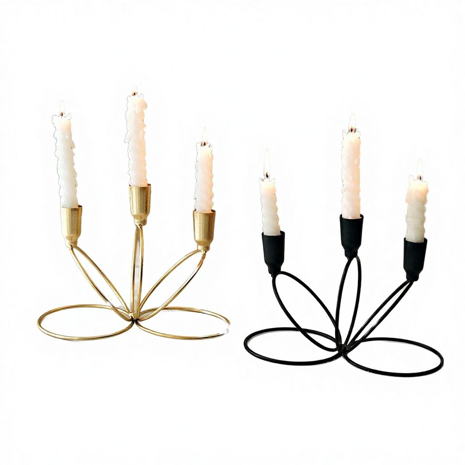 เชิงเทียนเหล็กสีทองรูปดอกไม้หลายหัวแบบไม่สมมาตร สไตล์ยุโรป สำหรับงานแต่งงาน คริสต์มาส อีสเตอร์ ของตกแต่งบ้าน ของขวัญ