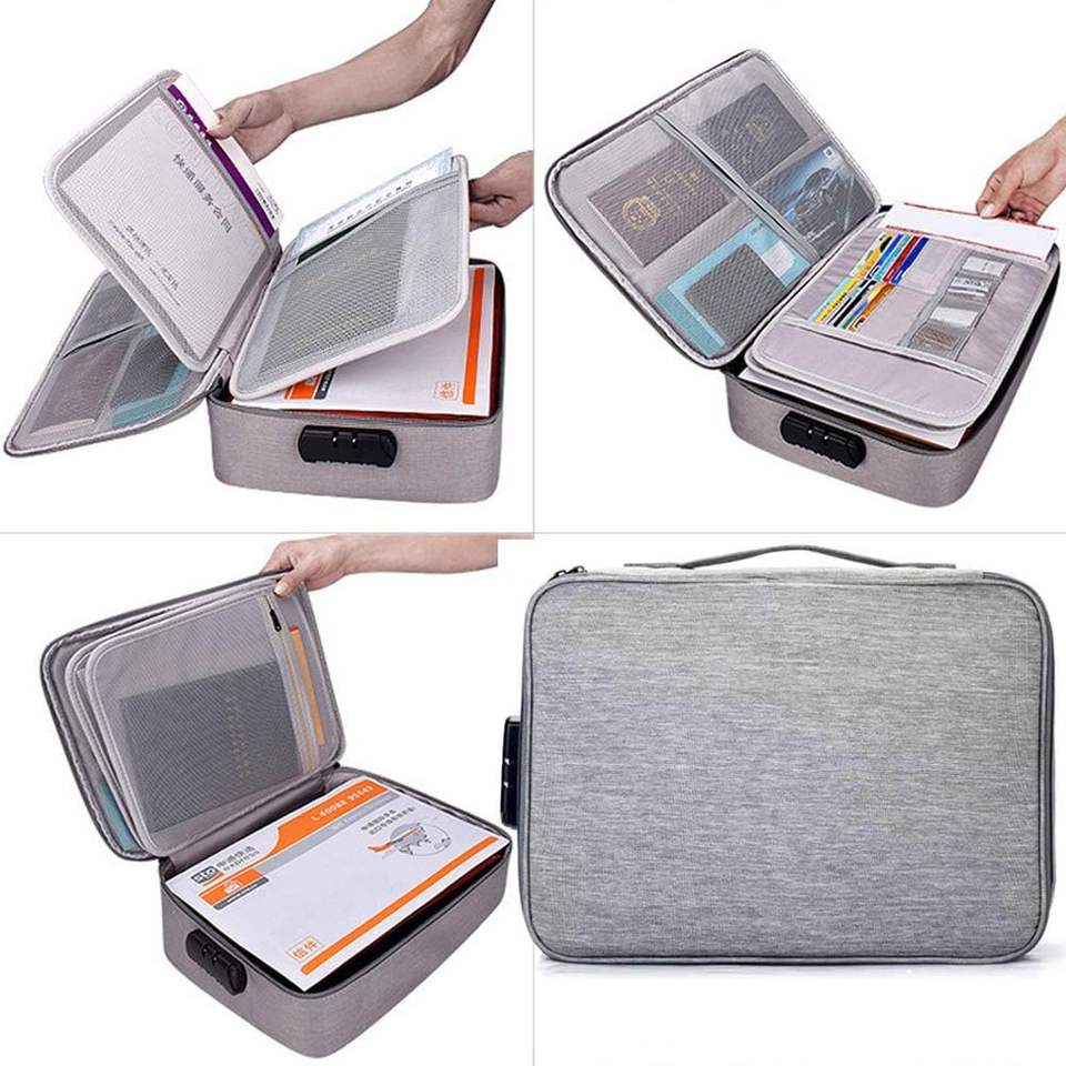 กระเป๋าเก็บของแบบพกพาหลายชั้น ล็อคได้ กันน้ำและกันไฟ ชุดกระเป๋าเอกสารสำหรับใส่พาสปอร์ตและเอกสารสำคัญ