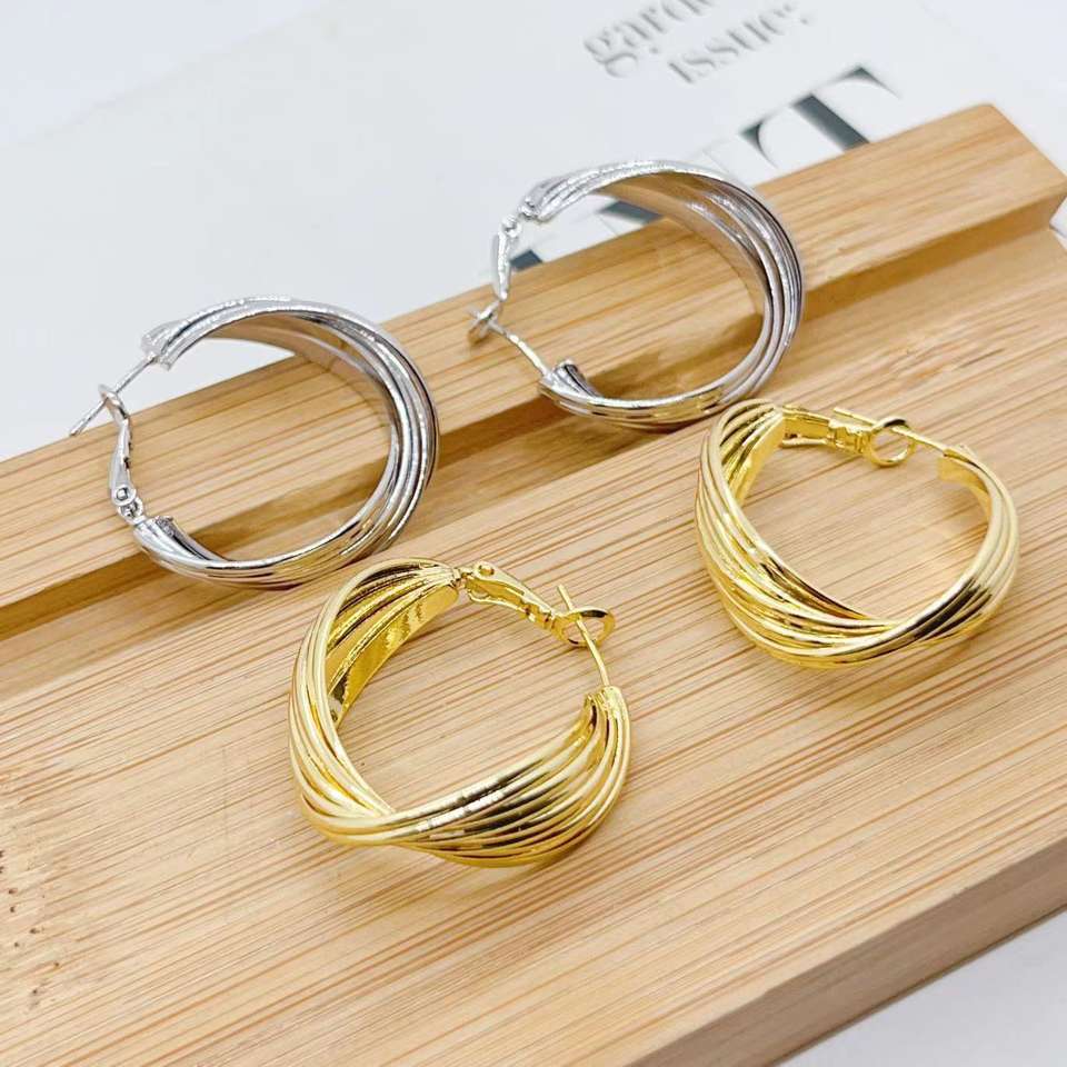 เครื่องประดับสแตนเลสหลายชั้นต่างหูโลหะเนื้อต่างหูผู้หญิงเฉพาะในช่องลมเย็น18K ต่างหูเหล็กไทเทเนียมทอง