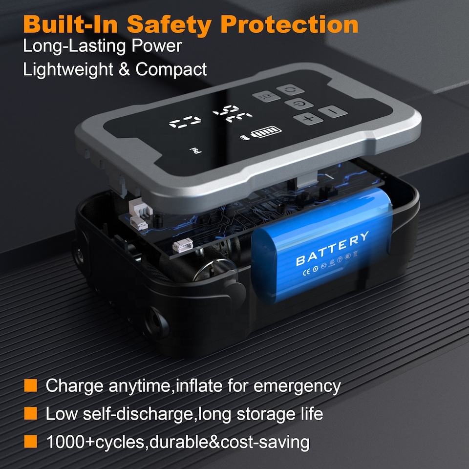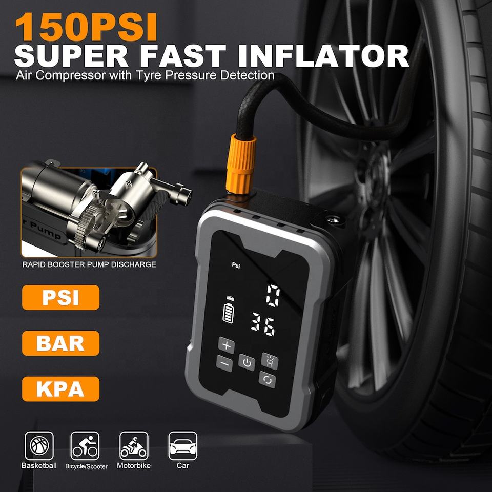 ปั๊มลมไฟฟ้าแบบพกพาไร้สายอเนกประสงค์ แรงดันสูง 150PSI สำหรับเติมลมยางรถยนต์