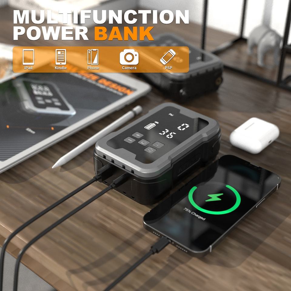 ไฟฉุกเฉิน, ไฟแสดงสถานะ, ความดันยาง Monitor, แบบพกพา, ปิดอัตโนมัติ, พาวเวอร์แบงค์, อัตราเงินเฟ้อที่รวดเร็วฟังก์ชัน