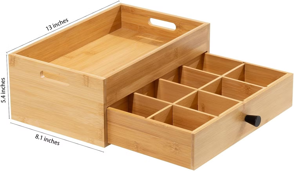 กล่องเก็บของไม้ไผ่อเนกประสงค์ห้องนั่งเล่น L13 x W8 x H5ขนาด4นิ้ว