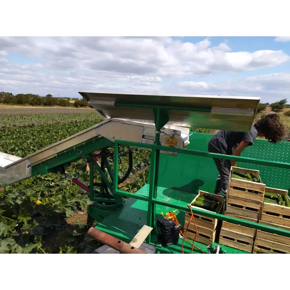 Multi-vegetable harvesting conveyor belt on a carried platform