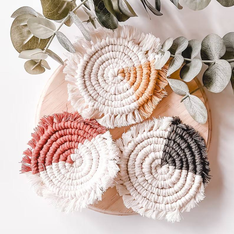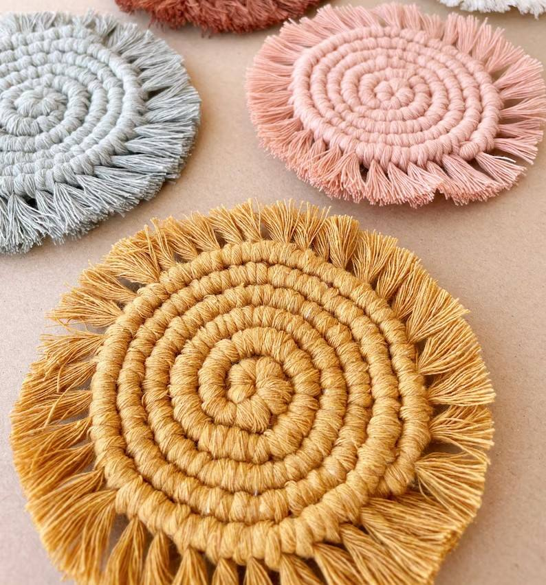ชุดแผ่นรองแก้วถักมือจากเชือกฝ้ายถักแบบมาคราเม่ หลากสี ดูดซับและทนความร้อน สำหรับวางแก้วน้ำ ชา กาแฟ