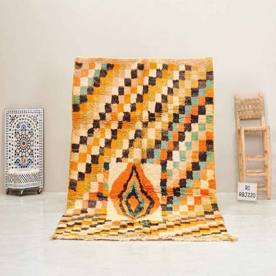 พรมทอลายลายตารางหมากรุกหลากสีสำหรับตกแต่งบ้านพรม100% พิมพ์ลายบล็อกด้วยมือ