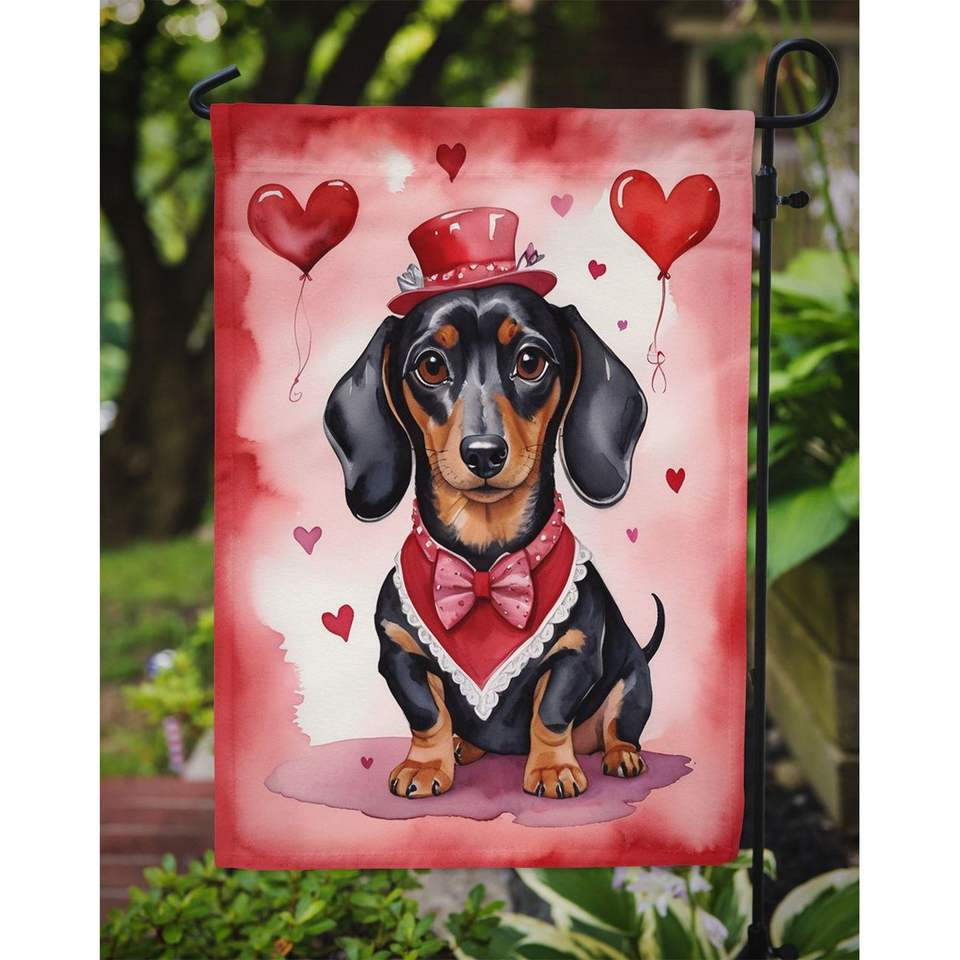 ดัชชุนด์หลากสีธงสวนวันวาเลนไทน์ตกแต่งกล่องจดหมายและแบนเนอร์ชานบ้านสำหรับงานศิลปะสนามหญ้าและสนามหญ้าสำหรับเตียงดอกไม้