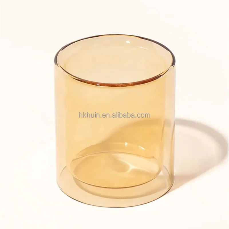 เชิงเทียนแก้วย้อมสีผนังสองสีทนความร้อนทรงกระบอกตรงด้านข้างโคมไฟแก้วเปล่าเชิงเทียนหลากสี