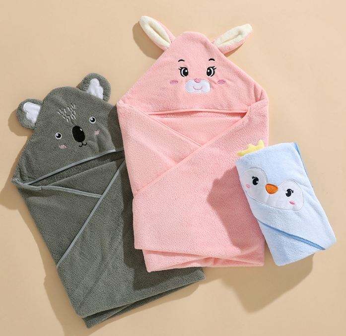 Multicolor Eco-Friendly Velvet Ponchos Soft Hooded Bath Towels for Kids Newborns Winter Cartoon Pattern Square for Bedroom Hotel