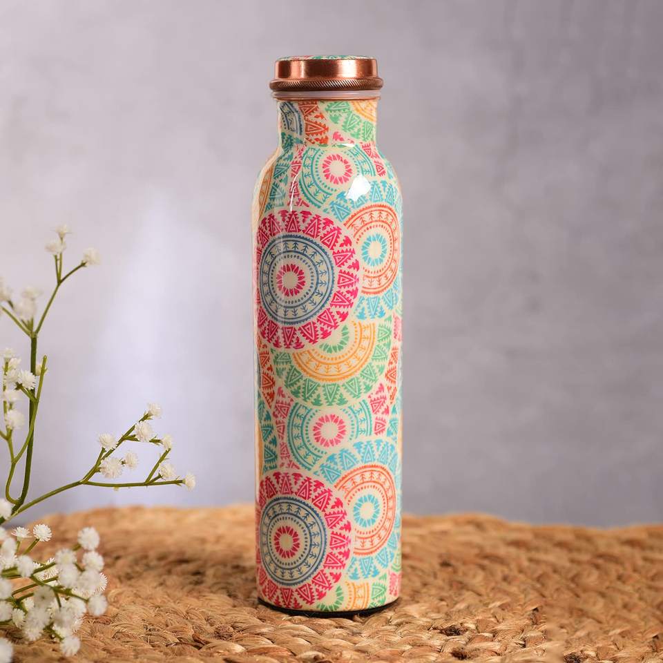 ขวดน้ำทองแดงบริสุทธิ์สำหรับการสร้างแบรนด์ขวดทองแดงปลอดสาร BPA พร้อมบรรจุภัณฑ์ออกแบบได้ตามต้องการขวดน้ำทองแดงบริสุทธิ์พิมพ์ลายดอกไม้