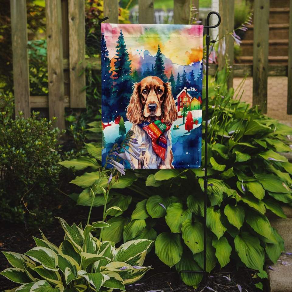 ธงประดับสวนคริสต์มาสค็อกเกอร์สแปเนียลแบบอังกฤษหลากสีสำหรับตกแต่งกล่องจดหมายและลานแบนเนอร์สำหรับสนามหญ้างานศิลปะสำหรับสนามหญ้าในสวนดอกไม้
