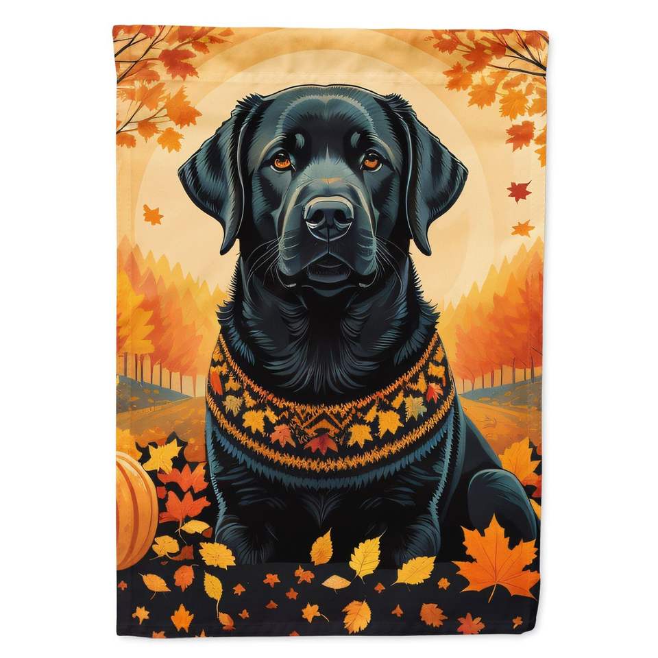 ธงสวนหลากสีสำหรับฤดูใบไม้ร่วงพร้อมตัวสุนัขลาบราดอร์สีดำสำหรับตกแต่งลานตู้จดหมายสำหรับเตียงดอกไม้ในสวนขนาดเล็ก