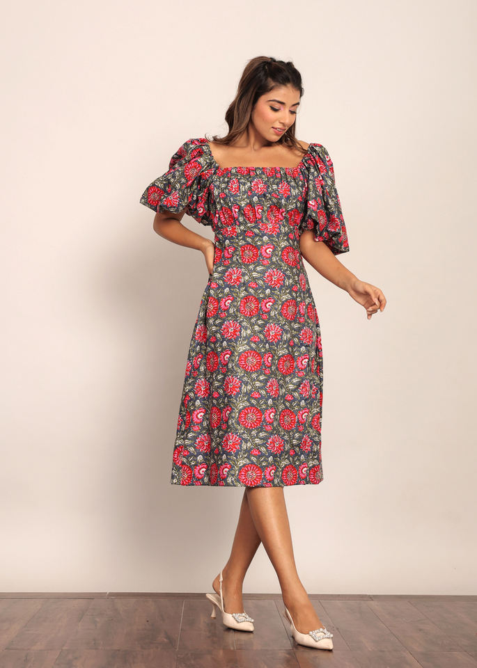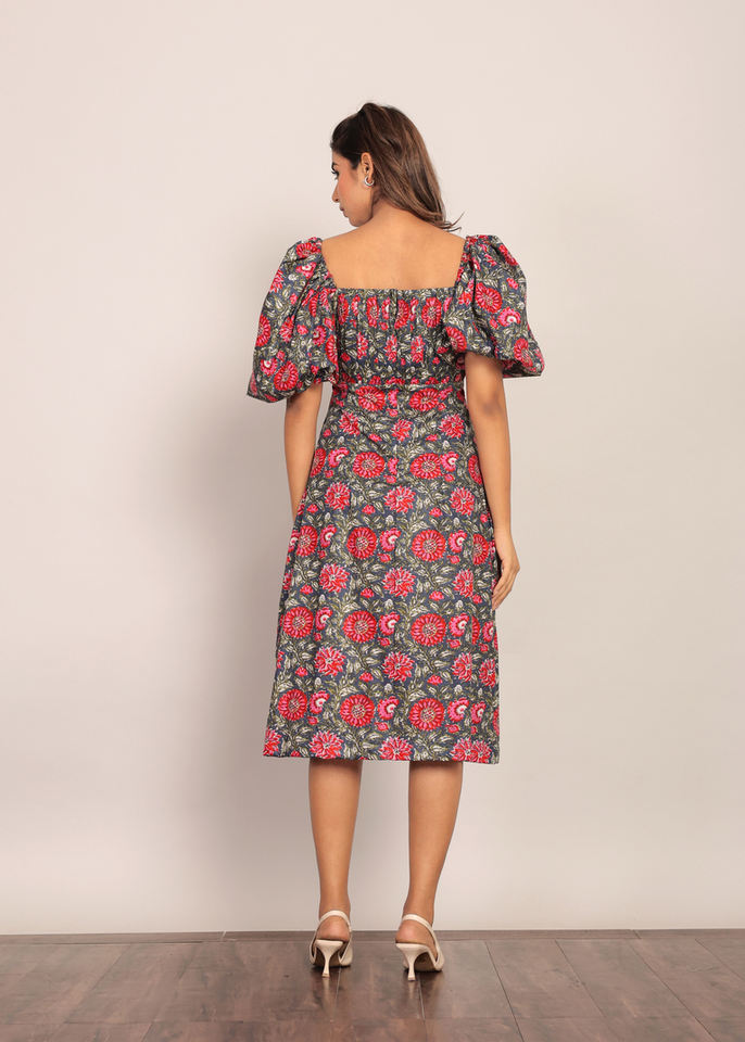 Product Name:Multicolor Floral Midi Dress With Side Cut Out