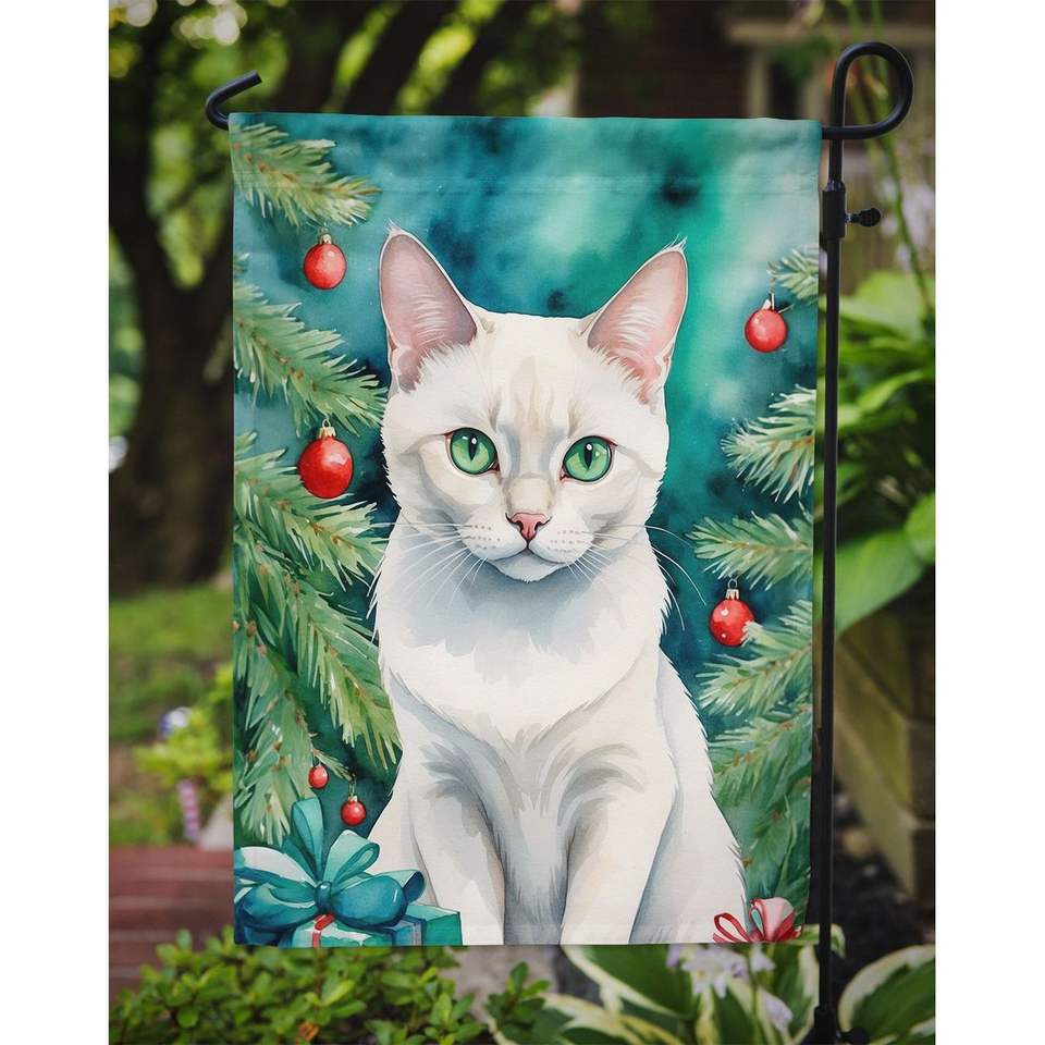 ธงประดับสวนรูปแมวสีขาวและต้นคริสต์มาสหลากสีสำหรับชานบ้านงานศิลปะและเตียงในสวน