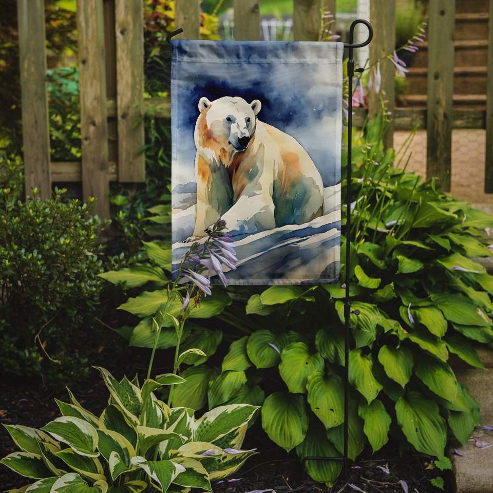 ธงสวนหลากสีที่มีหมีขั้วโลกสำหรับชานบ้านกล่องจดหมายหรือแบนเนอร์ตกแต่งลานสำหรับเตียงดอกไม้
