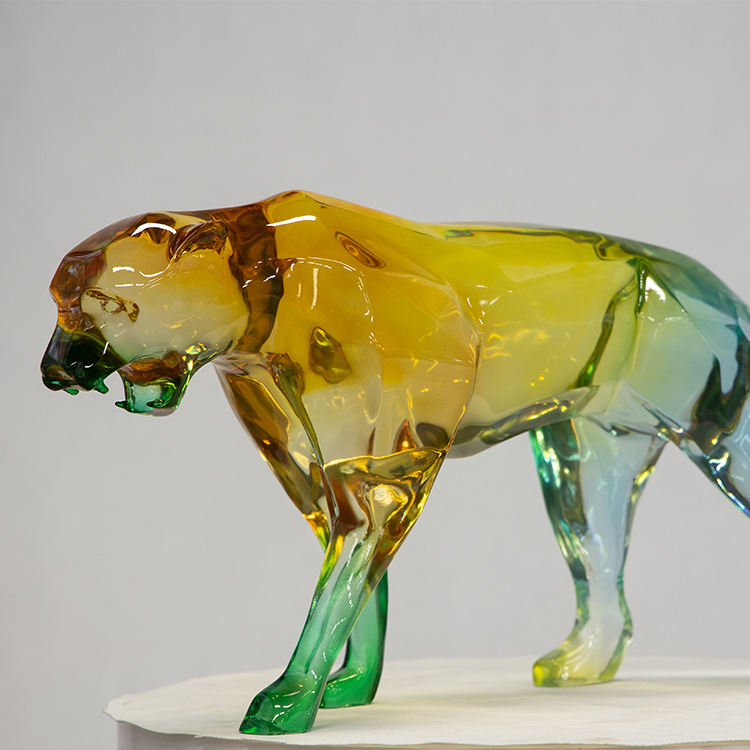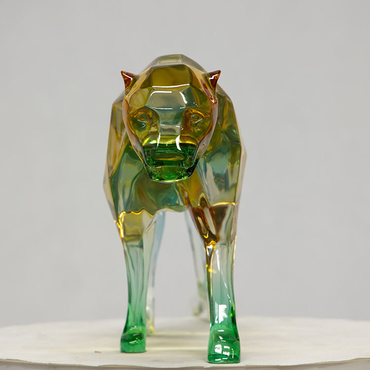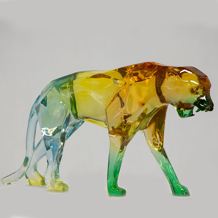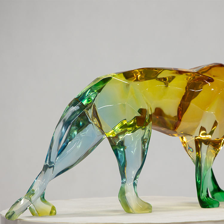 รูปปั้นเสือดาวเรซินใสรูปสัตว์รูปทรงเรขาคณิตหลากสีของตกแต่งบ้านที่ทำด้วยมือเครื่องประดับทันสมัยหรูหรา