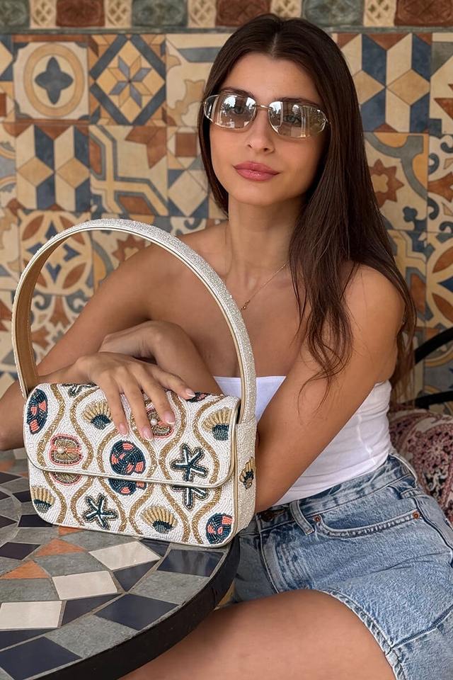 กระเป๋าลูกปัดแก้วหลากสีพร้อมหูหิ้ว กระเป๋าถือลำลอง งานแฮนด์เมดอินเดีย รูปทรงสั่งทำได้