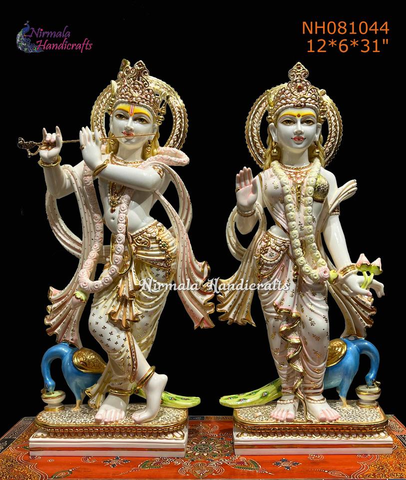 งานฝีมือเรซิ่นทำมือหลากสีสันสวยงาม รูปปั้นพระและพระแม่รอดา คริชนา แบบดั้งเดิม