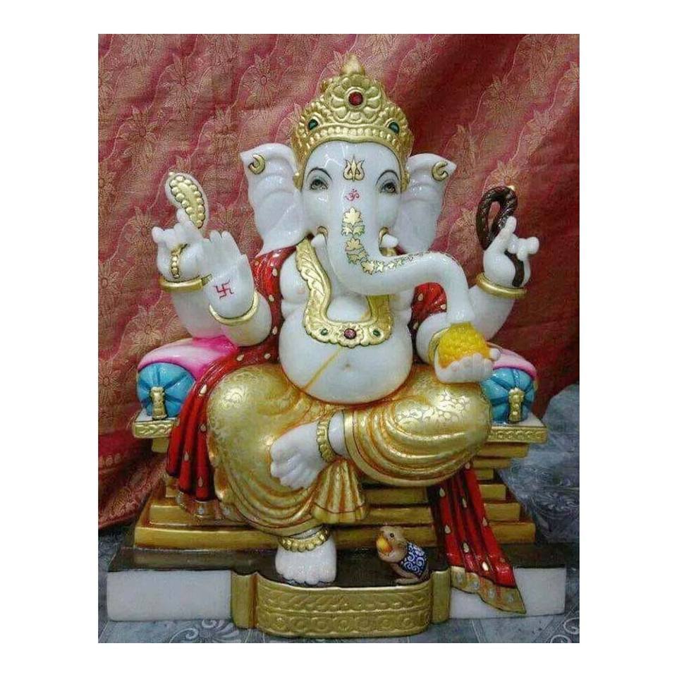 หลากสีหินอ่อนพระพิฆเนศนั่งรูปปั้นสำหรับบูชา