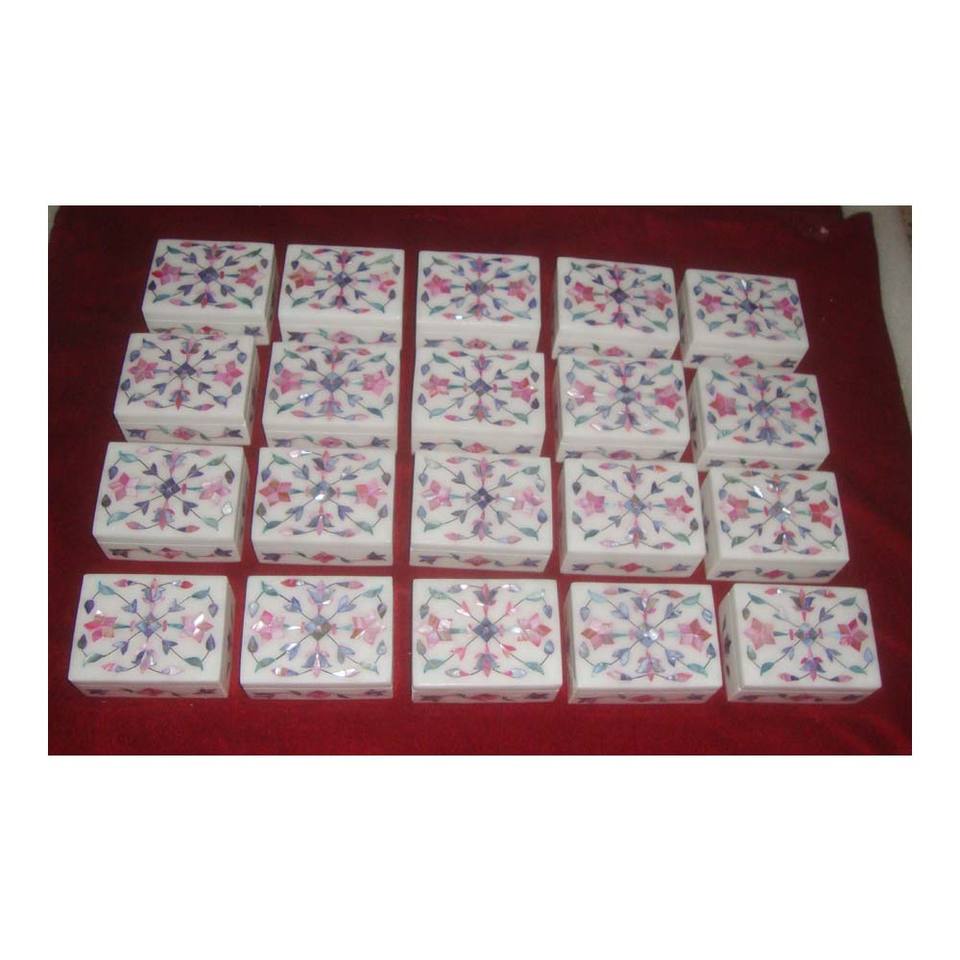 กล่องเครื่องประดับฝังหินอ่อนสีขาวทรงสี่เหลี่ยมประดับมุกธรรมชาติหลากสีสำหรับเทศกาลรอมฎอน