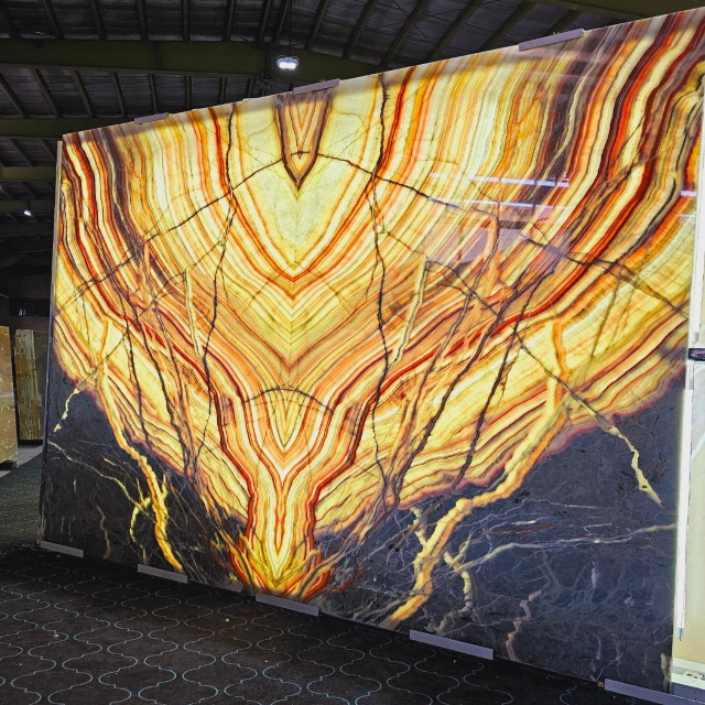 แผ่นหินอ่อนออนิกซ์หลากสีแบบมีไฟส่องด้านหลังสำหรับตกแต่งห้องน้ำ