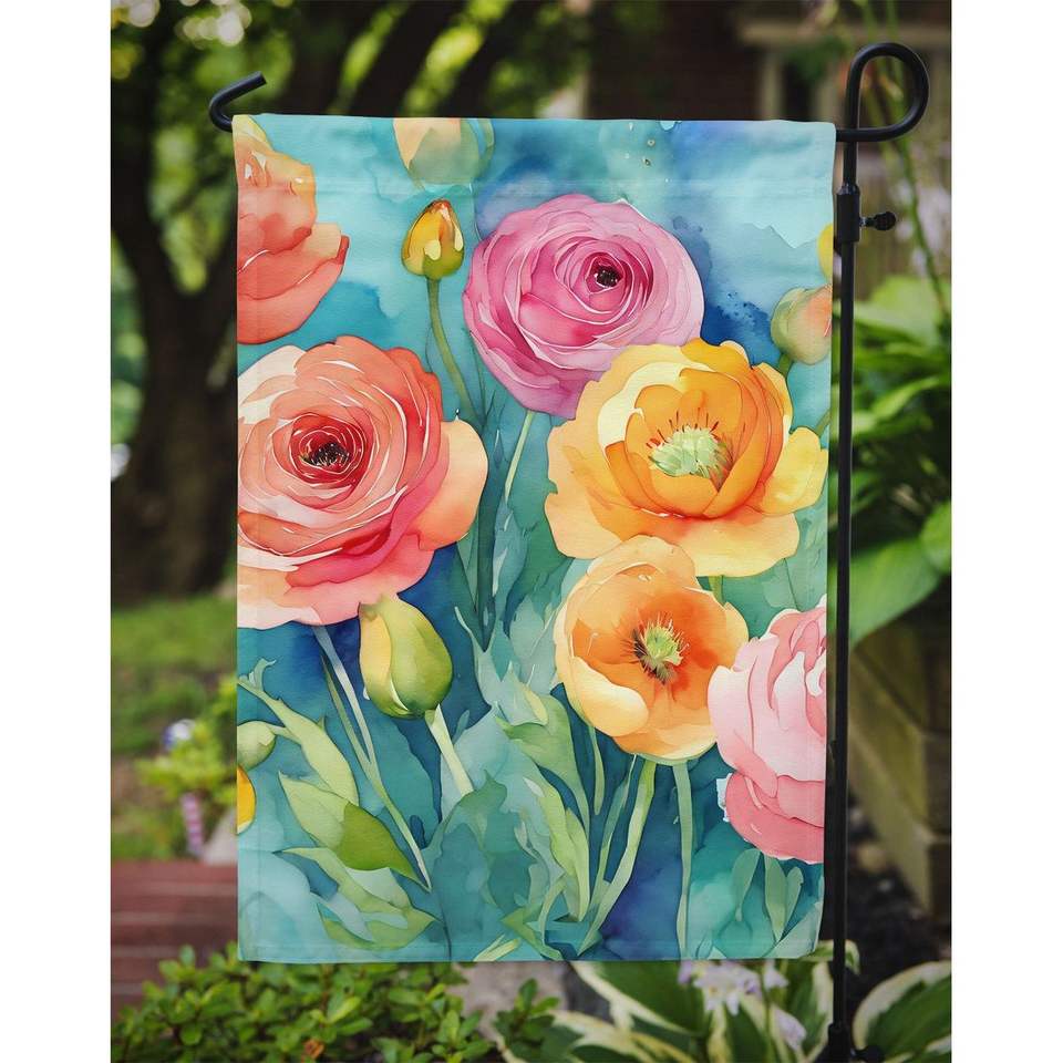 ธงประดับสวนสีน้ำ Ranunculus หลากสีสำหรับตกแต่งกล่องจดหมายและงานศิลปะลานบ้านสำหรับเตียงดอกไม้และป้ายสนามหญ้า