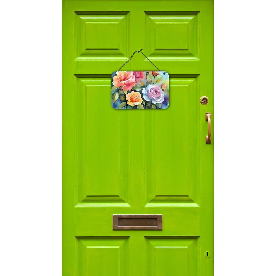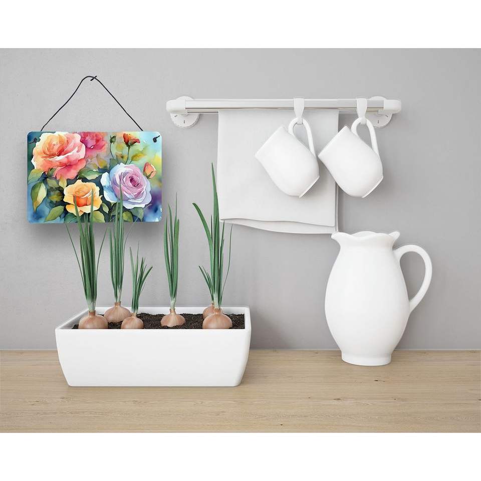 Multicolor Roses Watercolor Wall Hanging Prints New Aluminum Metal Sign for Kitchen Bar Bathroom Home Decor 8HX12W