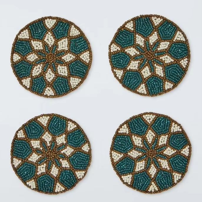 แผ่นรองแก้วเม็ดลูกปัดหลากสี ทำมือ แผ่นรองแก้วเม็ดลูกปัดสำหรับชา กาแฟ ไวน์ ฯลฯ ดีไซน์ไม่ซ้ำใคร