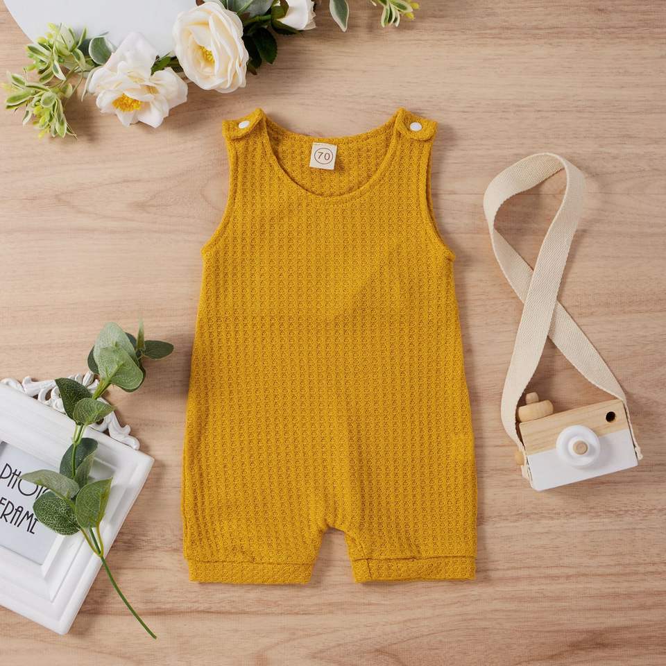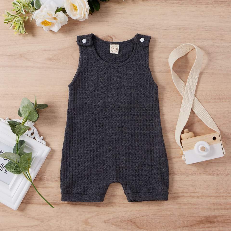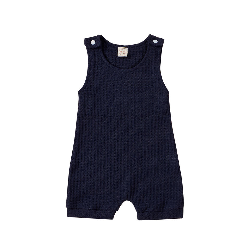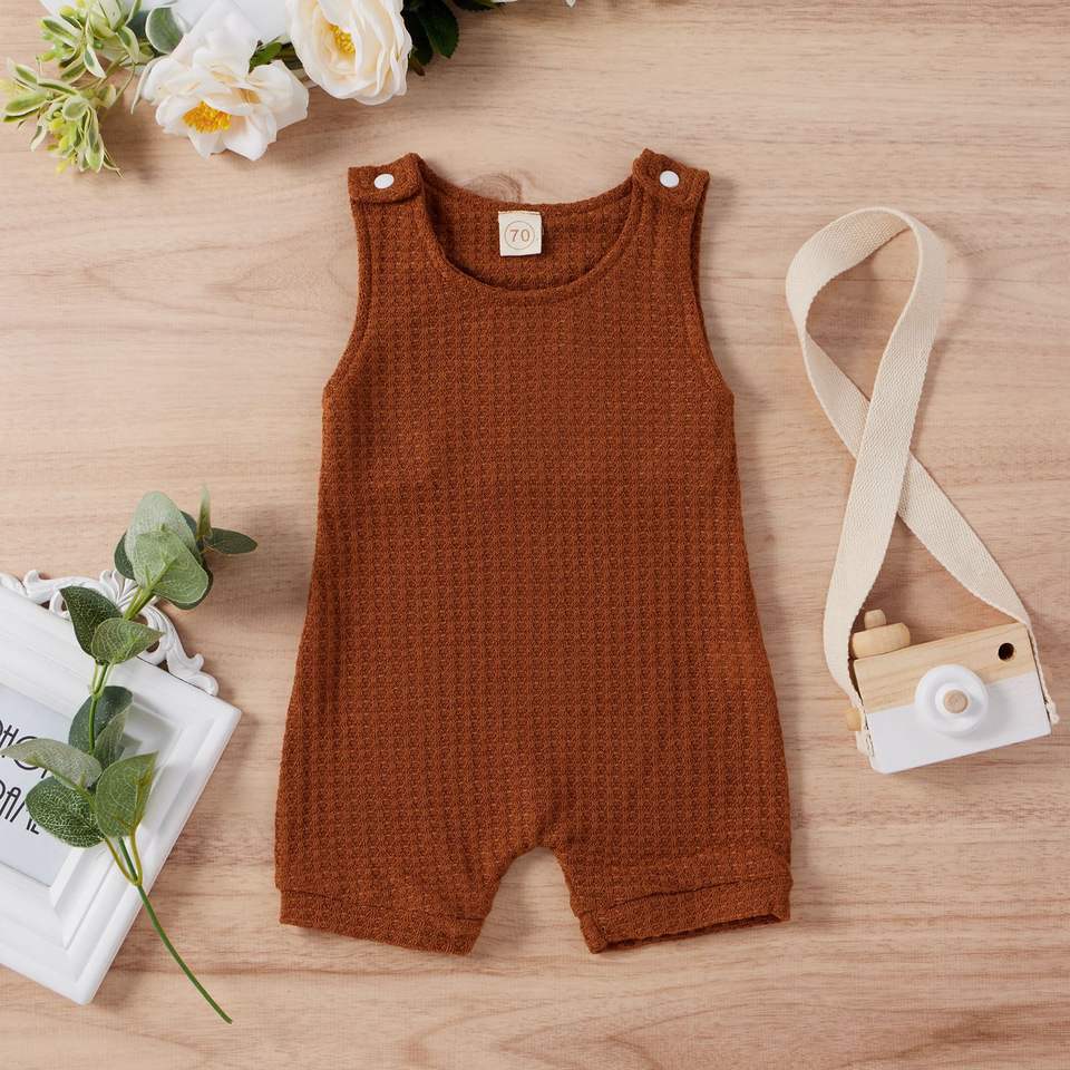 ชุดรอมเปอร์เด็กอ่อนแบบไม่มีแขน ลายวาฟเฟิลหลากสี สำหรับเด็กผู้ชายและเด็กผู้หญิง ผ้าฝ้าย 95% ติดกระดุมแป๊ก เหมาะสำหรับฤดูร้อน